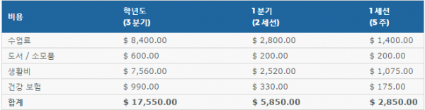 | 입학시기 및 지원마감 | 겨울학기: 1월 4일 봄학기: 4월 4일 가을학기: 6월 26일 겨울학기: 9월 19일